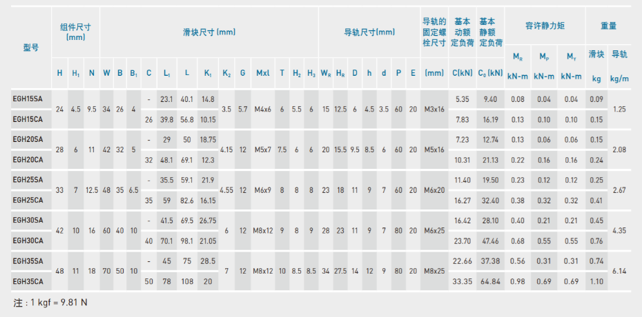 好了,直接上图表。下图是上银EG系列里的EGH四方形型直线综合好色规格尺寸表。规格从15直到35。